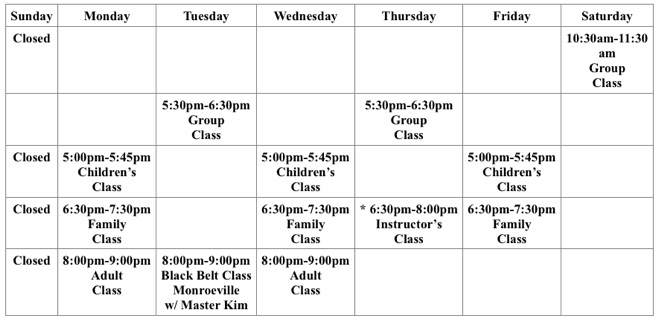 Our Current Class Schedule: